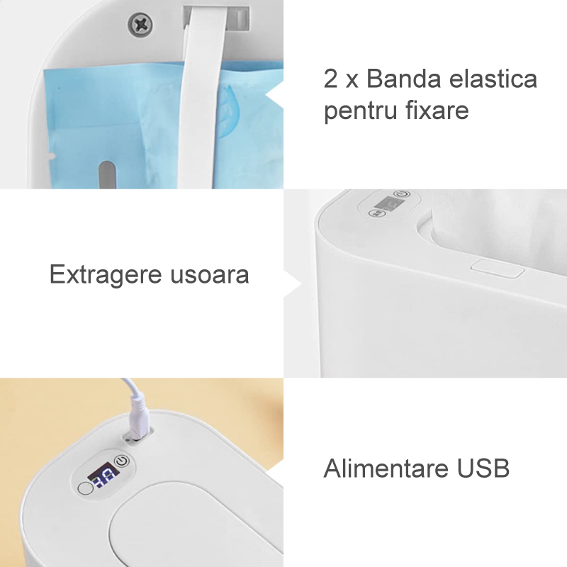 Dozatorul incalzitor este ideal pentru ingrijirea zilnica a bebelusilor, oferind servetele