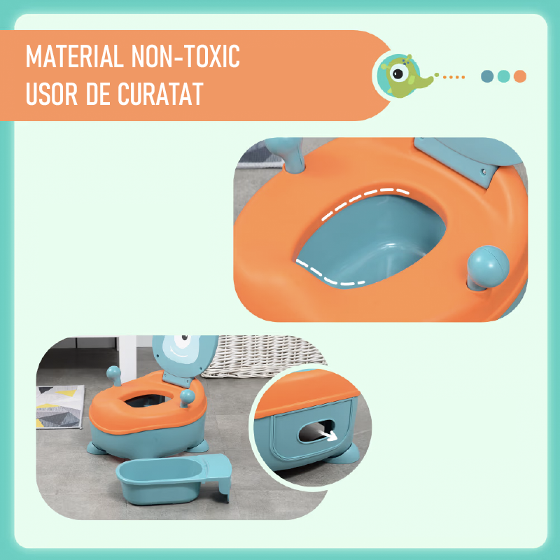 USOR DE CURATAT: Scaunul este usor de curatat, nu mai este nevoie sa speli intreaga olita. Pur si simplu scoate vasul detasabil din baza scaunului de antrenament si economisesti timp si energie.
