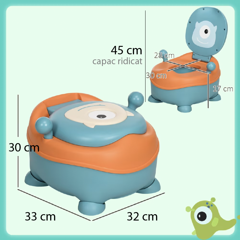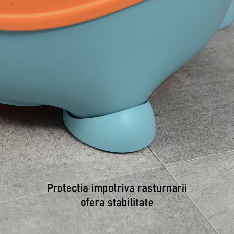 USOR DE UTILIZAT: Contururile largi permit o pozitie confortabila. Interiorul recipientului este usor de indepartat pentru curatare rapida sau utilizare ca toaleta. Protectia impotriva rasturnarii ofera stabilitate, fiind potrivit pentru copiii peste 15 luni.