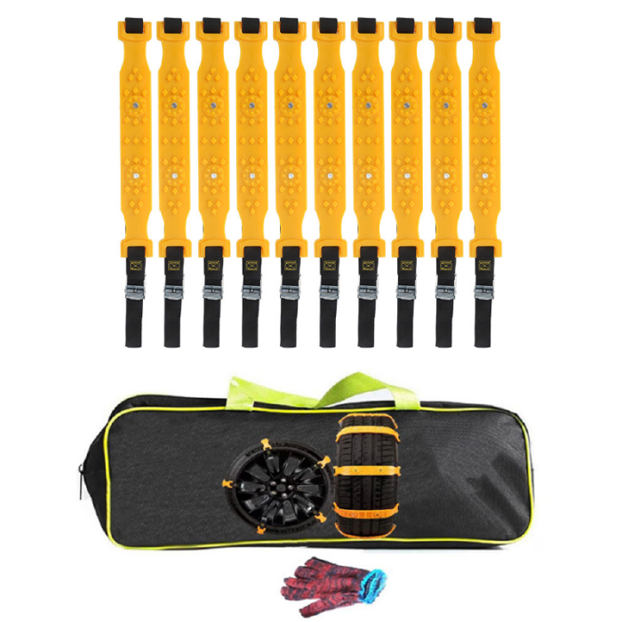 Set 10 Benzi Antiderapante Auto SUPER TRENDS® Pentru Zapada si Noroi cu Geanta de Transport si Manusi