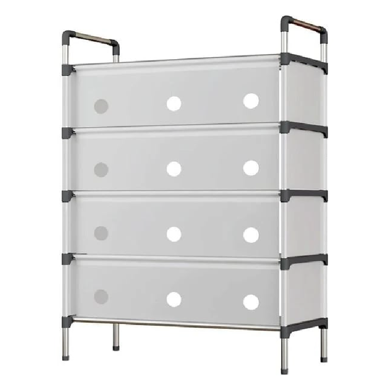 Sistemul de depozitare pentru pantofi este echipat cu un covoras de praf si o husa de praf pentru fiecare nivel, fiind foarte rezistent la apa si praf.