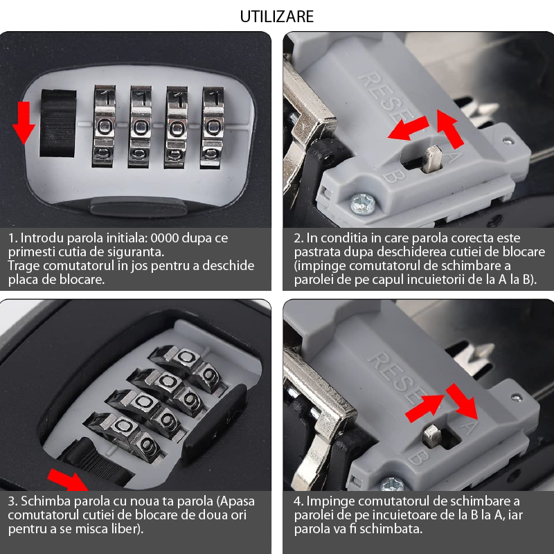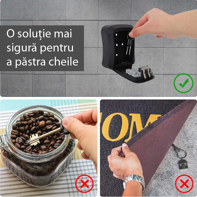 Cutia pentru chei poate fi montata in depozite, intrari, garaje, usi de urgenta etc. Este solutia ideala pentru a nu mai cara mai multe chei sau pentru a preveni pierderea lor. Utila si pentru vizitele neasteptate ale prietenilor sau rudelor.