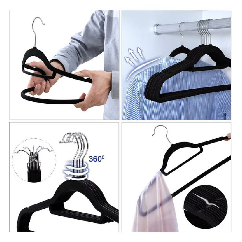 Set Umerase Catifea, Antiderapante SUPER TRENDS®, Negru – Carlig Rotativ 360°, 0.6 cm Grosime, Design Slim & Multifunctional
