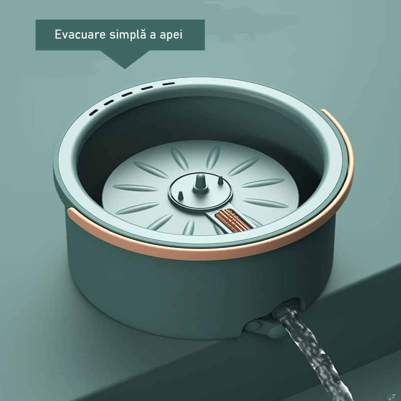 Set mop cu galeata, mop cu separare a apei murdare si sistem de filtrare a apei, cu stoarcere automata prin rotatie, utilizare uscata si umeda, potrivit pentru lemn, parchet, laminat si gresie.