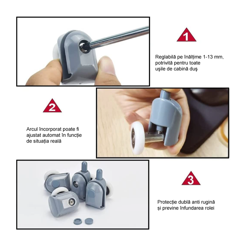 Acestea nu doar asigura o glisare lina a usii, ci contribuie si la prevenirea iesirii usii de pe sina.