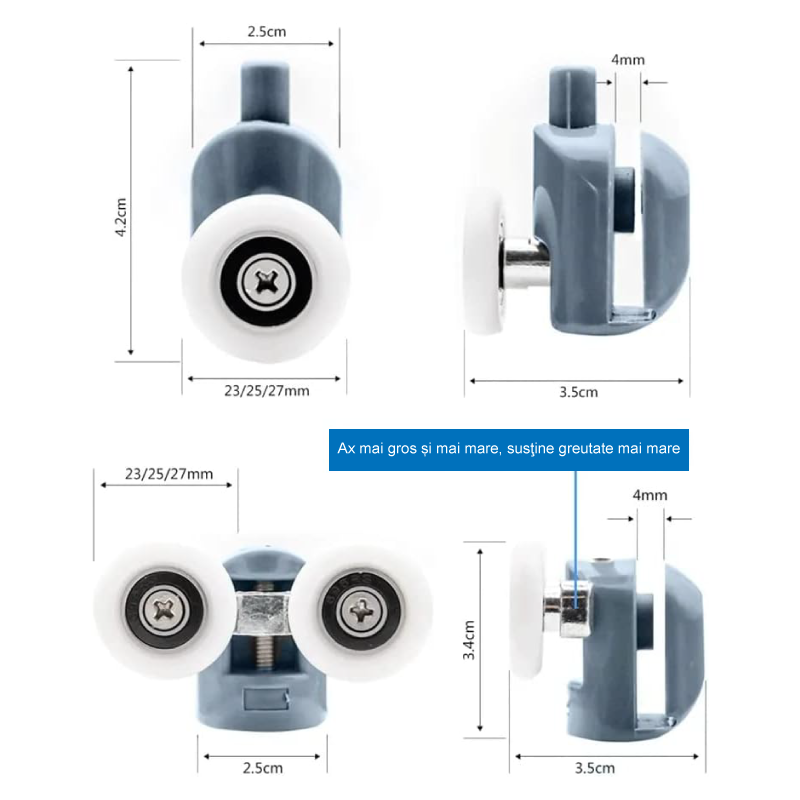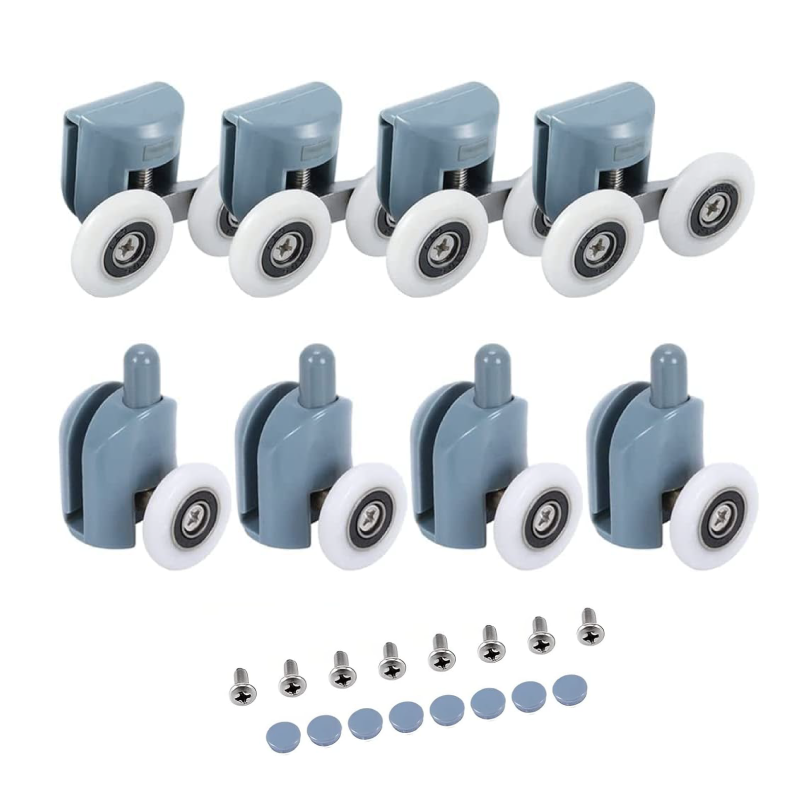 Set Role Universale Premium SUPER TRENDS®, Pentru Cabina de Dus, cu Rulmenti, 8 buc, Alb-albastru