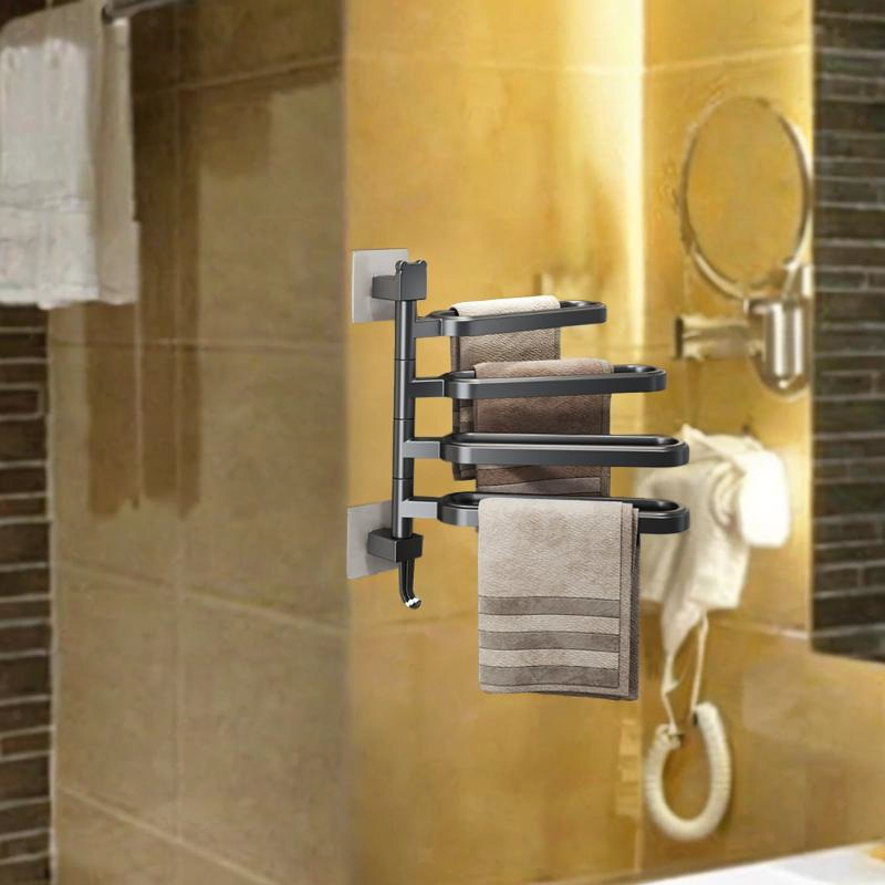 Echipat cu mai multe brate pivotante care se rotesc la 180°, acest suport de prosoape permite accesul facil la prosoape, mentinand baia ordonata si economisind spatiu.
