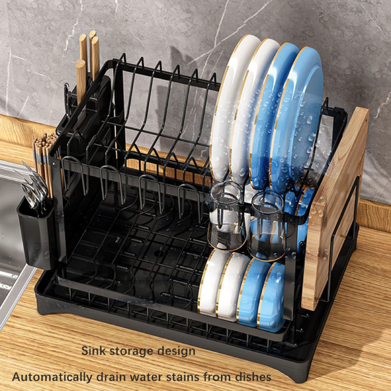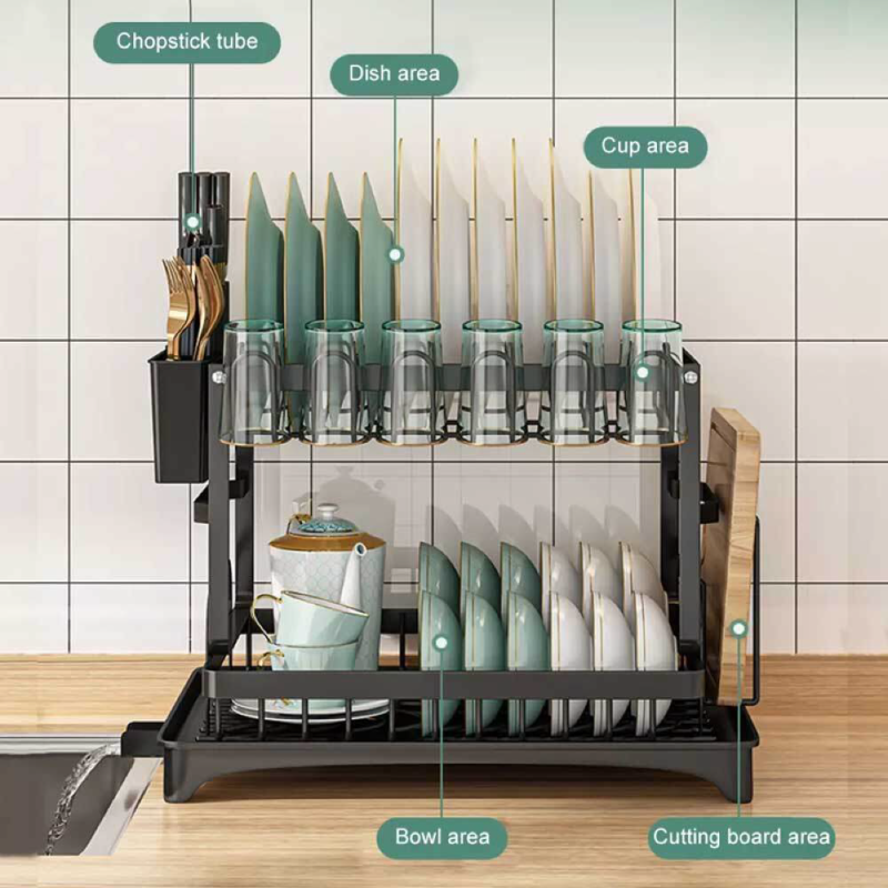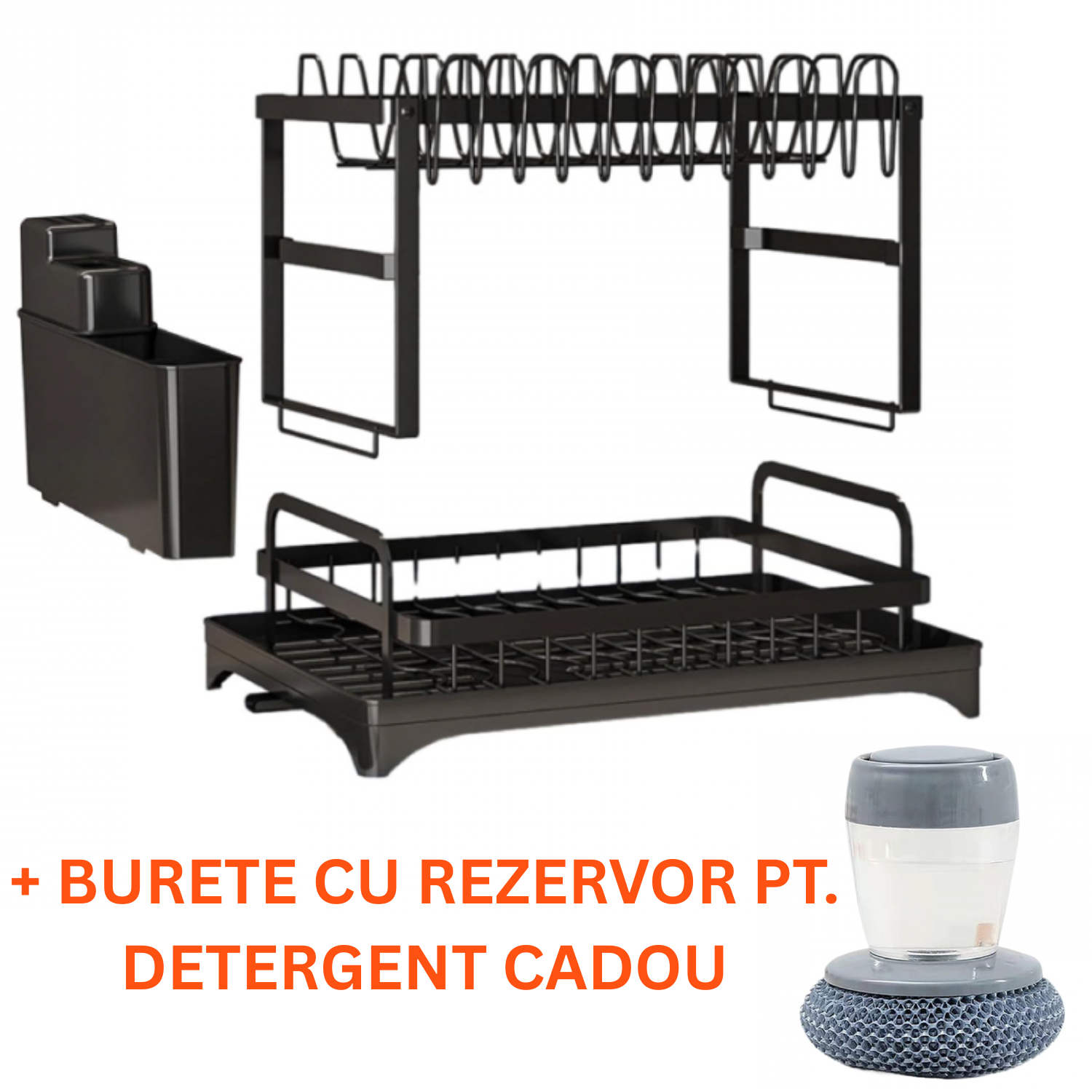 Acest suport de uscare pe doua niveluri este versatil si usor de folosit in orice bucatarie.