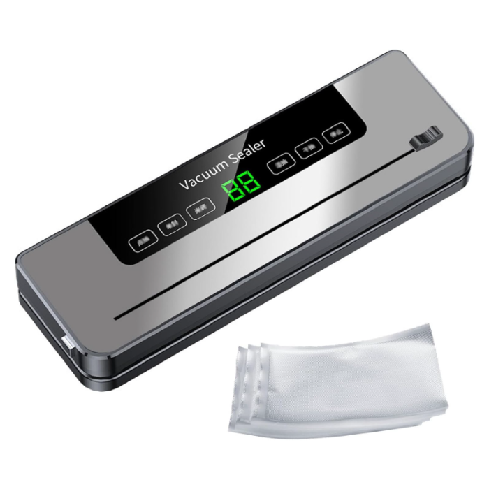 Aparat de Vidat Rapid si Compact cu 5 Moduri de Sigilare SUPER TRENDS®, Afisaj Inteligent, 10 Pungi Pentru Vidat Incluse, Cutter Incorporat, Gri