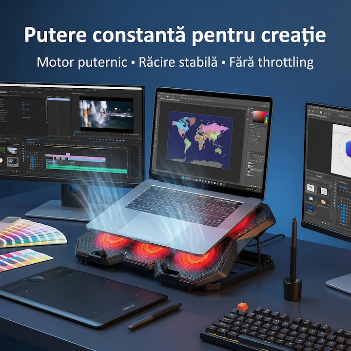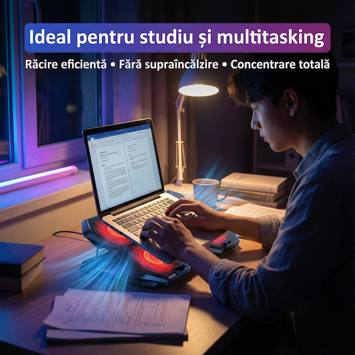 Coolerul laptop este alegerea potrivita pentru utilizatorii care isi doresc performanta constanta, ergonomie si un plus de estetica, indiferent de scenariul de utilizare.