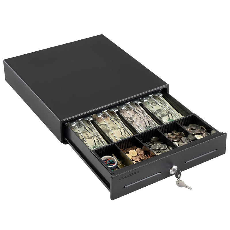 Sertarul de bani are dimensiunile de 33cm x 34cm x 9cm, cu o tensiune de 6/12 V. Cadrul metalic rezistent il face ideal atat pentru afaceri mici, cat si pentru locatii comerciale mai mari.