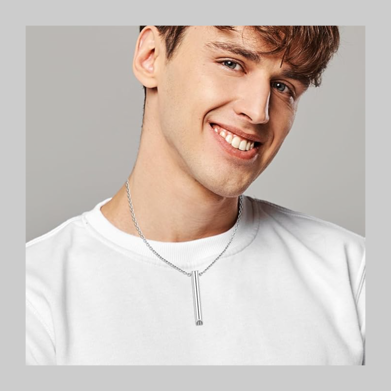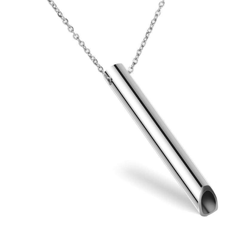 Pandantivul si lantul sunt fabricate din otel inoxidabil. Poti experimenta rapid beneficiile meditatiei si respiratiei constiente oriunde te-ai afla, cu ajutorul acestui instrument simplu de ingrijire personala care face exercitiile de respiratie mult mai usoare.