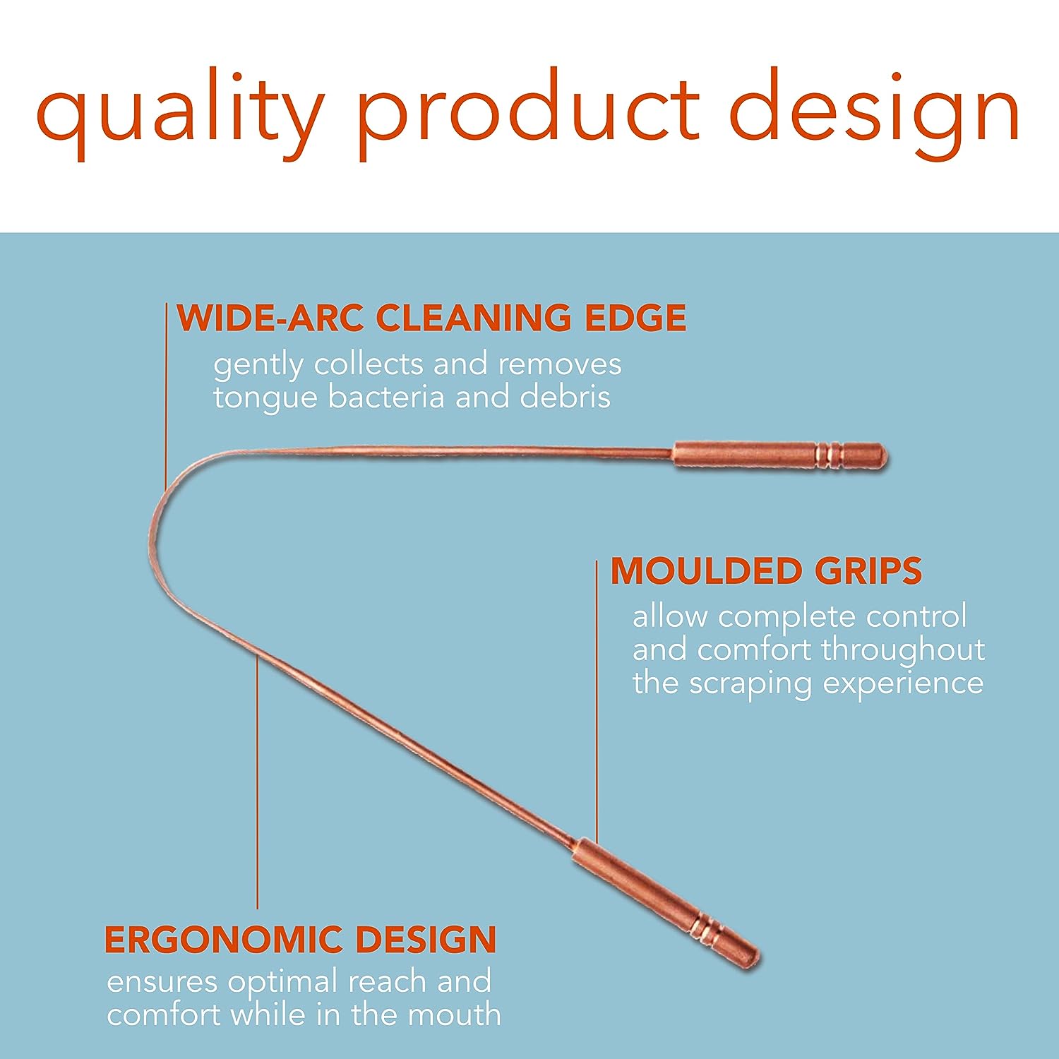 Curatare Naturala cu Cupru 100% Pur: Cuprul are proprietati naturale de curatare care fac ca curatarea limbii sa fie si mai eficienta. Se recomanda curatarea limbii cu ajutorul scrapperelor de cupru datorita proprietatilor lor curative si de curatare.