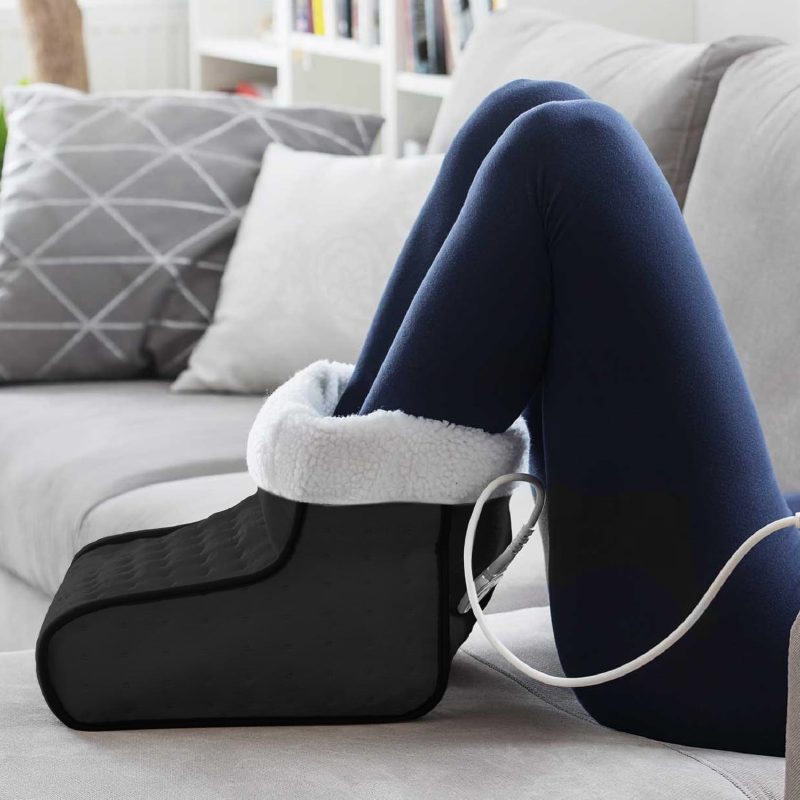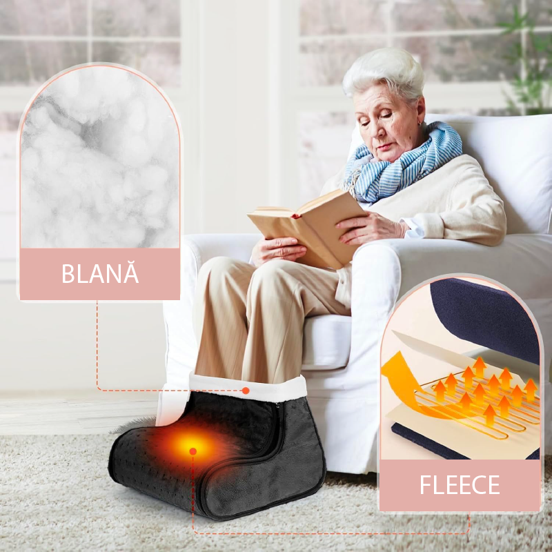 Incalzitor de picioare pentru acasa cu husa lavabila din fleece si lana, confort rapid pentru picioare reci