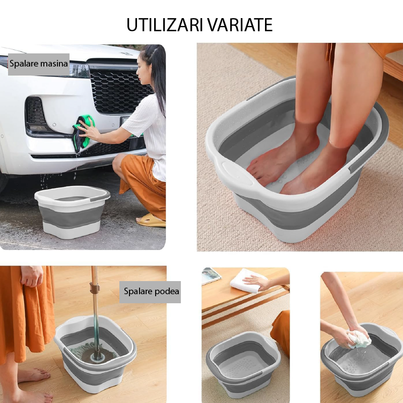 Poate fi folosit nu doar ca un lighean pentru inmuierea picioarelor, ci si pentru spalarea masinii, ca recipient din plastic pentru curatenie, cos de depozitare sau pentru rufe. De asemenea, este ideal ca si galeata pentru apa, lighean de pescuit, baie cu gheata pentru picioare, perfect pentru plaja sau deplasari.