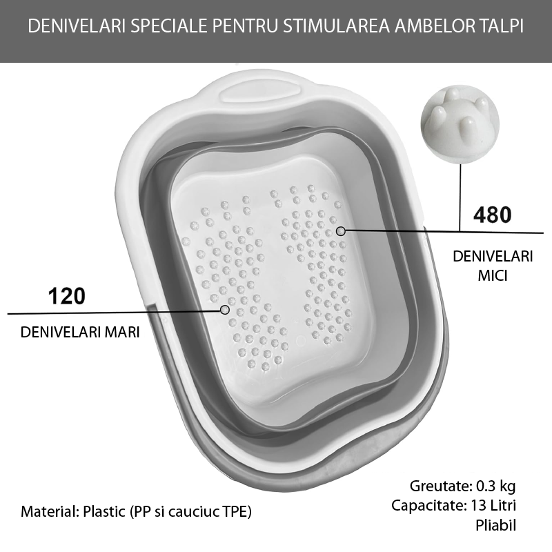 Lighean Pliabil Pentru Baie de Picioare SUPER TRENDS®, 13 L, Pedichiura, Masaj si Ingrijire, cu Maner, Usor de Curatat, cu Puncte de