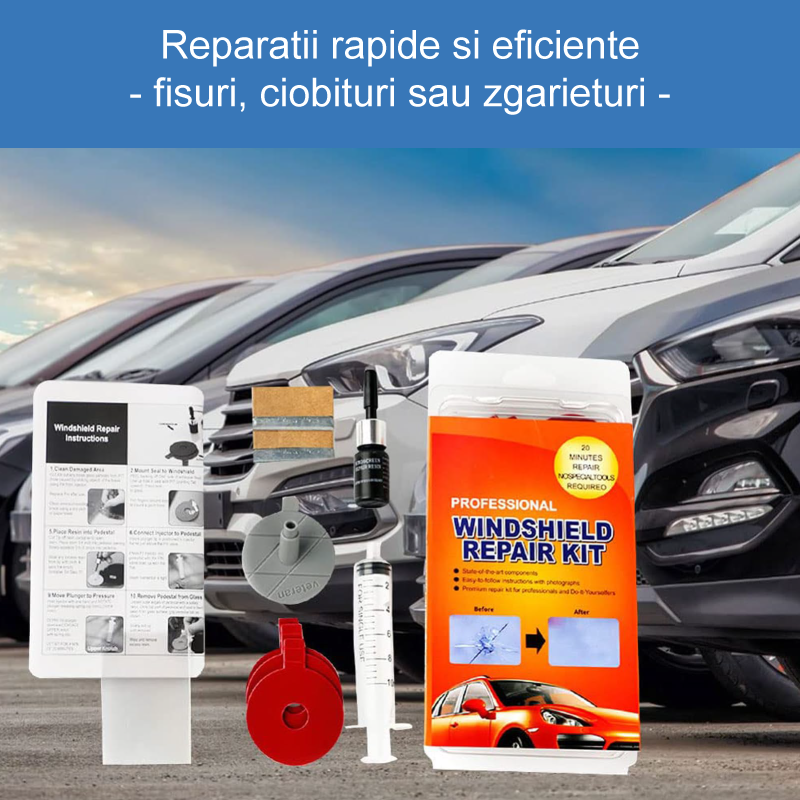 Kitul de reparatie pentru parbriz auto este solutia ideala pentru a remedia rapid si eficient micile fisuri, ciobituri sau zgarieturi de pe parbriz si alte suprafete din sticla. Cu ajutorul acestui set, poti prelungi durata de viata a parbrizului, prevenind extinderea fisurilor si economisind costurile inlocuirii.