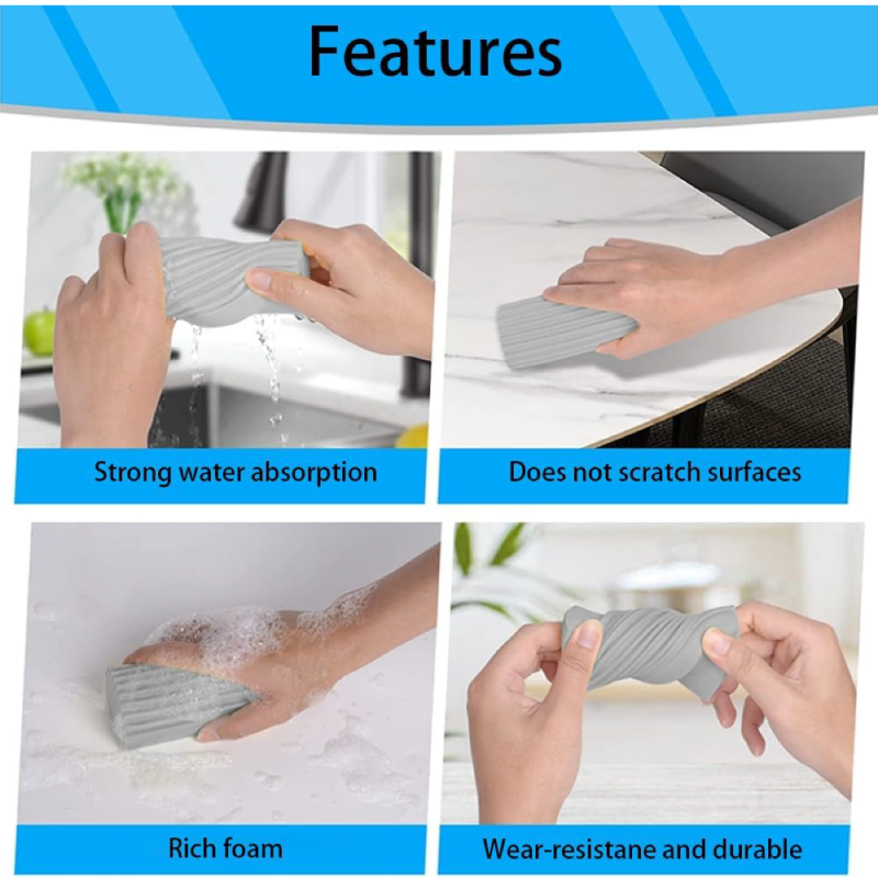 Buretele umed de curatat este durabil si reutilizabil. Spre deosebire de carpele de sters praful, toate firele de par, praful si resturile sunt prinse in porii buretelui. Nu mai este nevoie sa imprastii praful in aer.