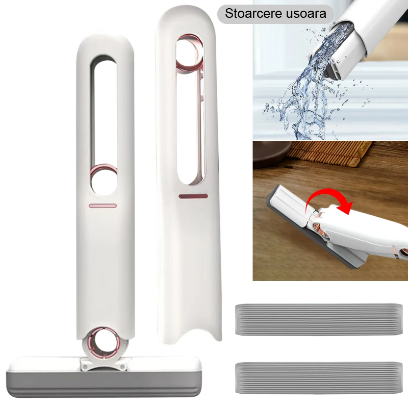Spalare umeda si uscata: petele de apa pot fi sterse imediat iar folosind inelul tip push-pull, mopul va stoarce automat buretele de apa;