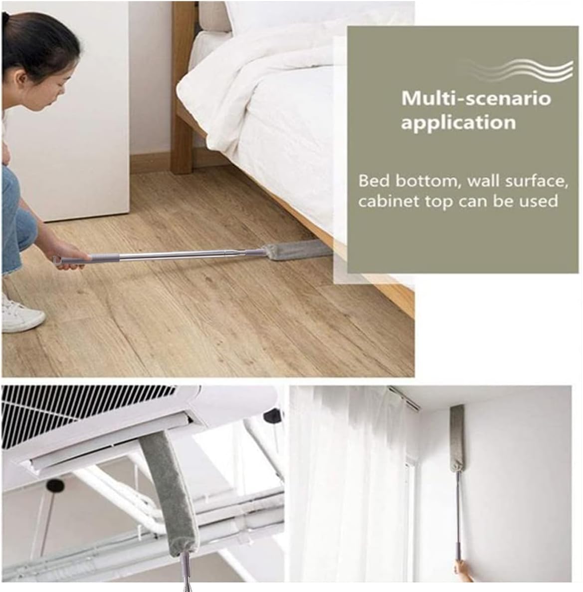 Material de inalta calitate - Placa de indepartare a prafului este fabricata din PP, care este moale si rezistenta la rupere. Este echipata cu o husa de microfibra pentru indepartarea prafului, usor de curatat si rezistenta la deteriorare. Poate indeparta cu usurinta praful din crapaturile greu accesibile, reducand in acelasi timp greutatea. Cu maner retractabil din otel inoxidabil, solid si durabil.