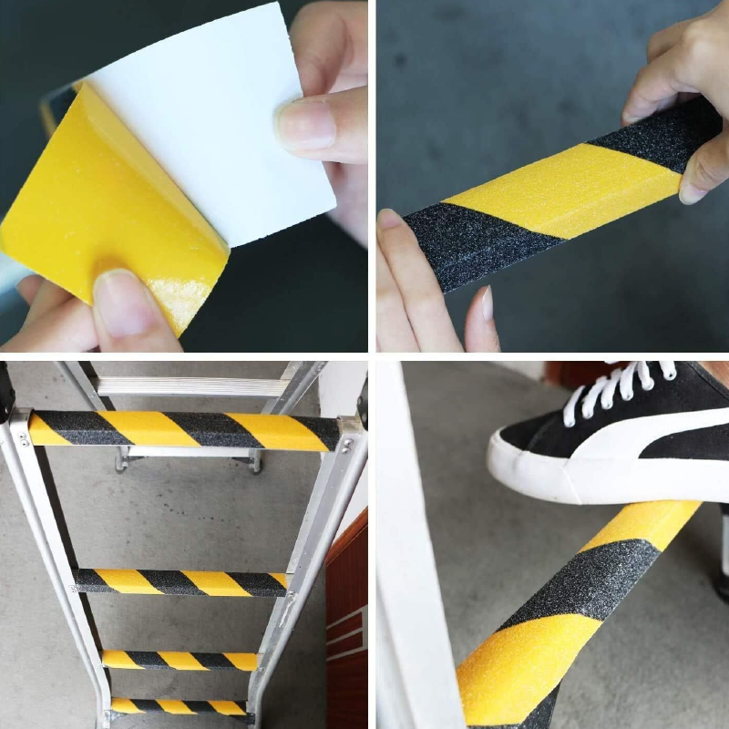 Montajul benzilor antialunecare este simplu si eficient. Indepartezi folia protectoare a adezivului si aplici banda pe suprafata dorita, presand usor pentru fixare. Pentru o aderenta optima, asigura-te ca zona este curata, uscata si degresata.