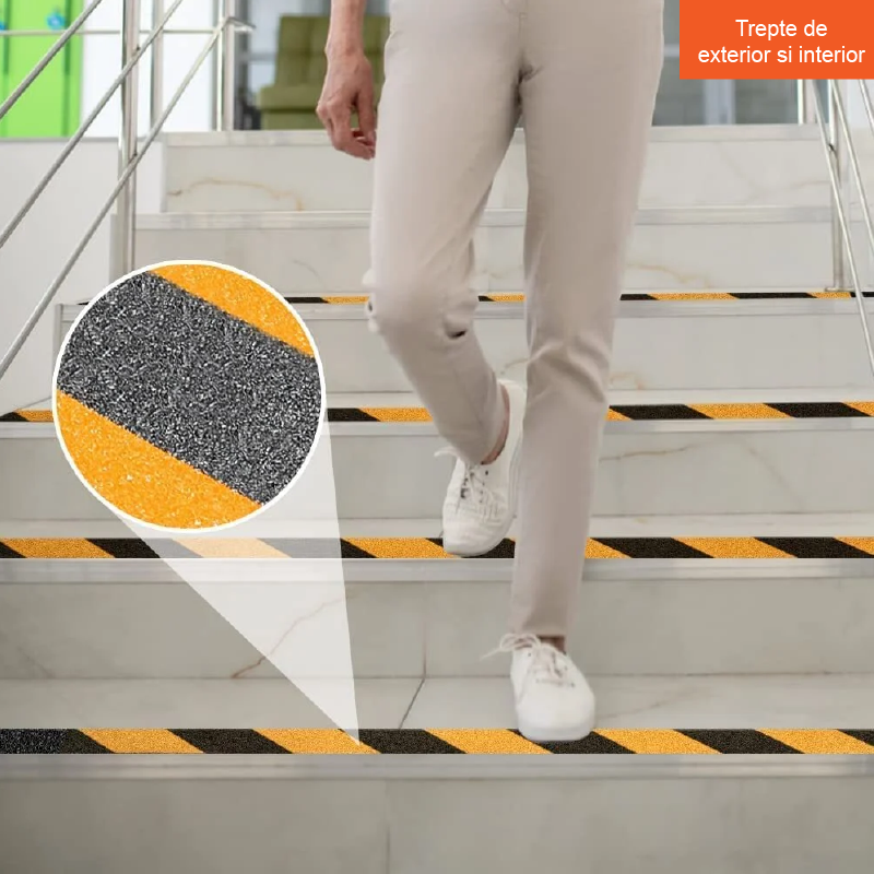 Benzile antiderapante reprezinta o metoda simpla si eficienta pentru cresterea sigurantei in multiple locuri: trepte, scari, podele, rampe, platforme pentru scaune rulante si altele. Datorita texturii abrazive, sunt ideale atat in locuinte, cat si in medii industriale – cum ar fi spatii comerciale, fabrici, hale, garaje sau ateliere.