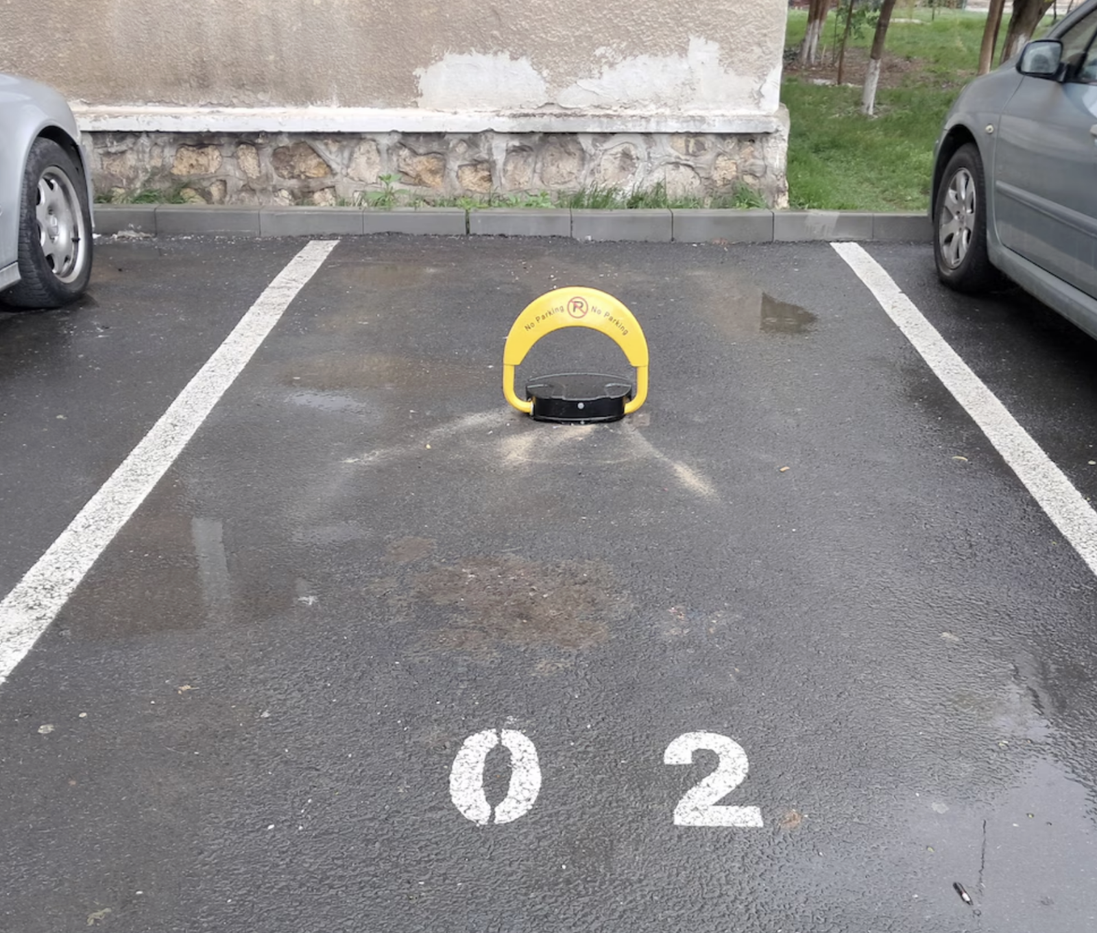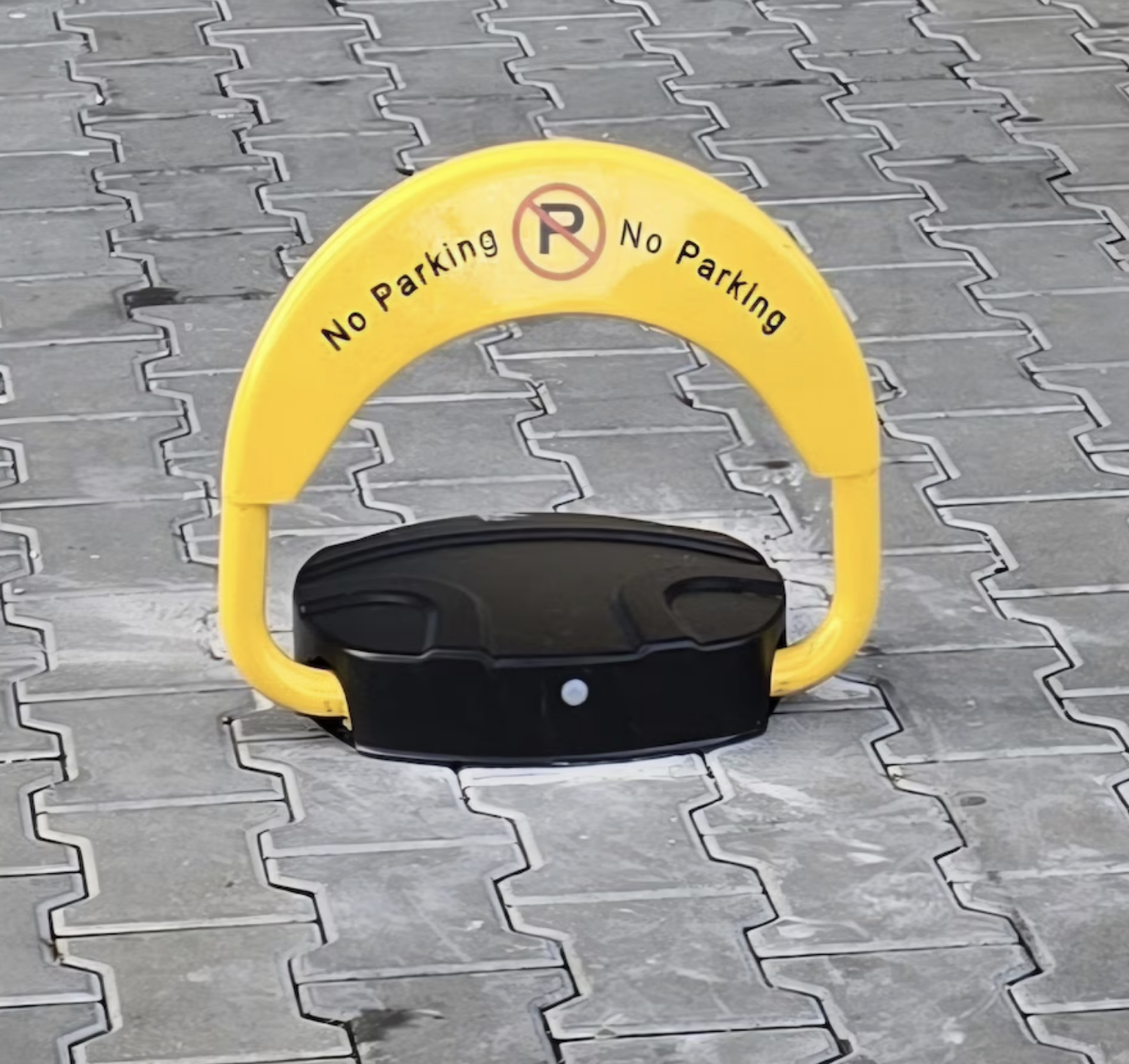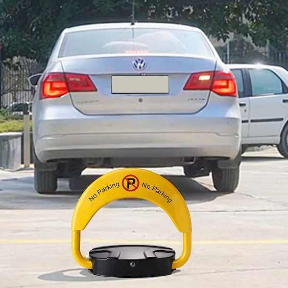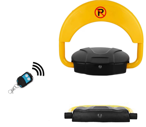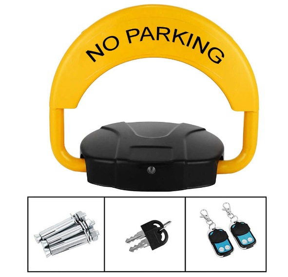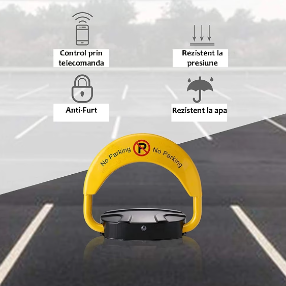 Blocator Parcare Automat SUPER TRENDS®, Functie Anti Furt cu Alarma, Control de la Distanta, Telecomanda Inclusa, cu Baterii, Greutate Suportata 5 Tone, Negru/Galben