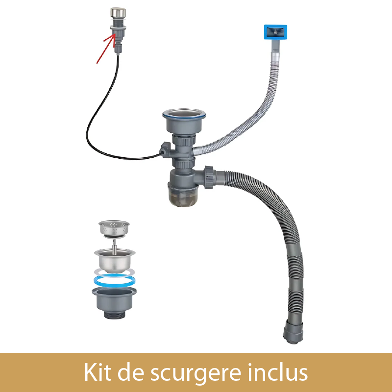 Aceasta chiuveta aduce un plus de rafinament si modernitate in bucataria ta, combinand tehnologia de ultima generatie cu un design elegant. Fabricata din otel inoxidabil de calitate superioara, chiuveta se remarca atat prin aspectul sau stilat, cat si prin rezistenta ridicata la zgarieturi, fiind ideala pentru utilizare indelungata.