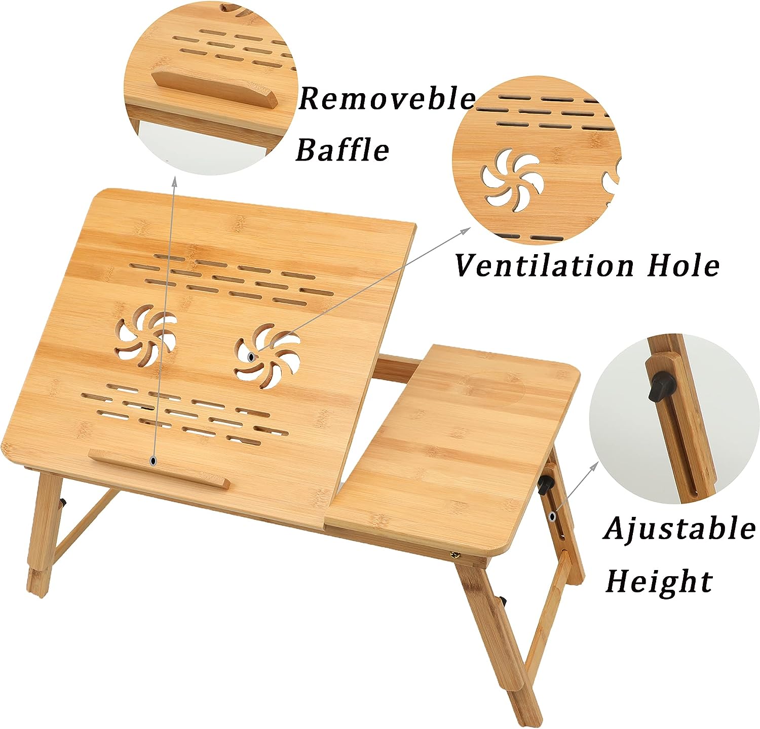 Material de inalta calitate - Standul pentru laptop este realizat din bambus natural. Suprafata neteda a mesei ofera o senzatie confortabila si relaxanta.