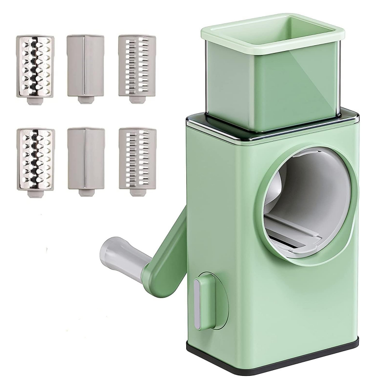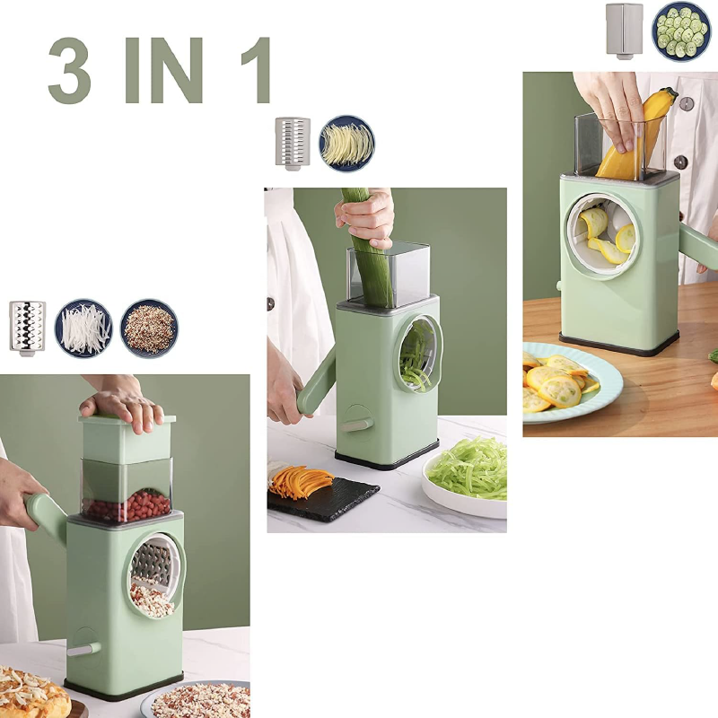 Razatoarea are 3 lame interschimbabile, un curatator si o perie. Poate fi folosita ca raziatoare de branza, taietor de legume, aparat pentru salata, feliator de cartofi tip julienne si feliator de fructe. Te ajuta eficient la aproape toate sarcinile de pregatire a mancarii si este un ajutor bun in bucatarie atat pentru incepatori, cat si pentru cei cu experienta.