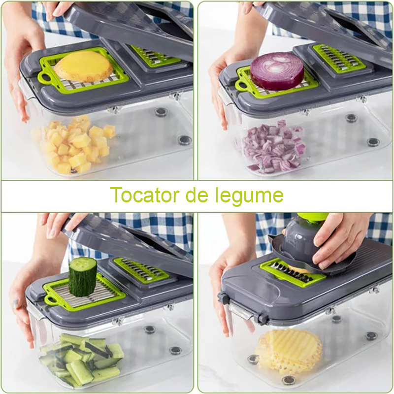Razatoarea multifunctionala pentru legume contine 22 de accesorii diferite, ceea ce iti permite sa tai, sa feliezi, si sa radeti legumele intr-o varietate de forme si dimensiuni.