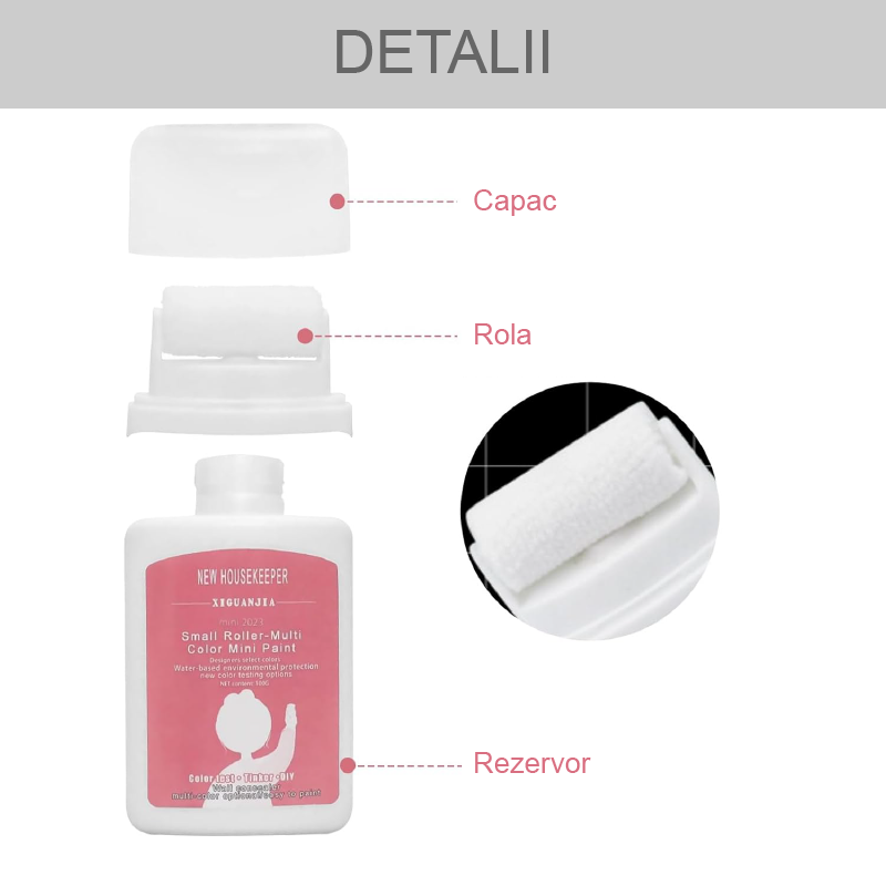 Unealta practica pentru retusuri rapide si precise pe pereti! Rola mini pentru aplicarea pastei de reparatie si vopsea este ideala pentru acoperirea fisurilor, zgarieturilor si petelor mici. Usor de folosit, perfecta pentru lucrari de renovare DIY sau reparatii rapide in locuinta.