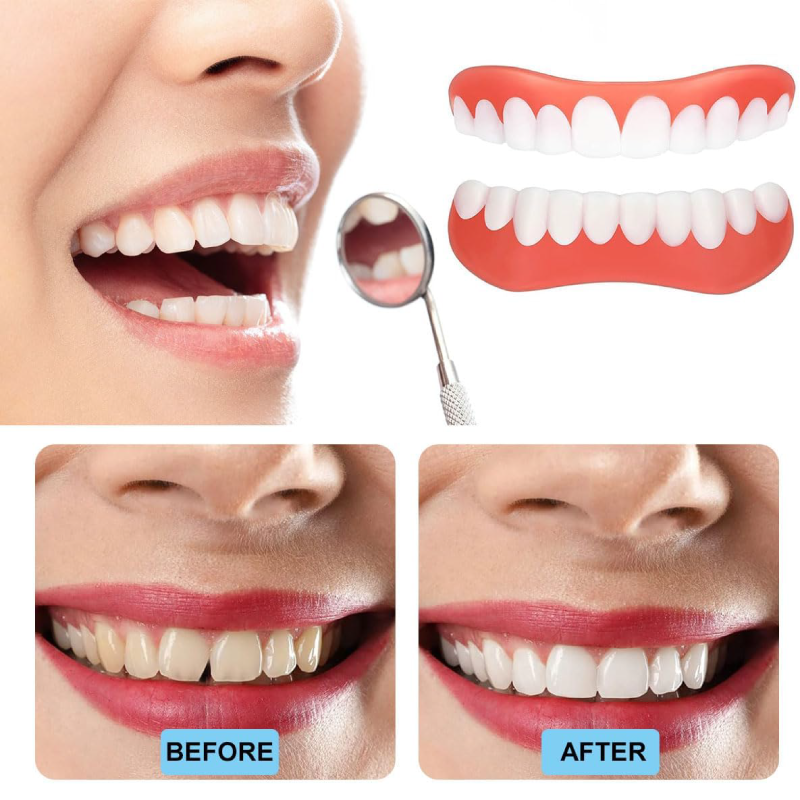 ALBIRE INSTANTA – Design subtire, cu tehnologie pliabila ultra-fina. Partea frontala imita perfect dantura naturala, fiind o alternativa excelenta la aparatele dentare costisitoare. Potrivite pentru barbati si femei.