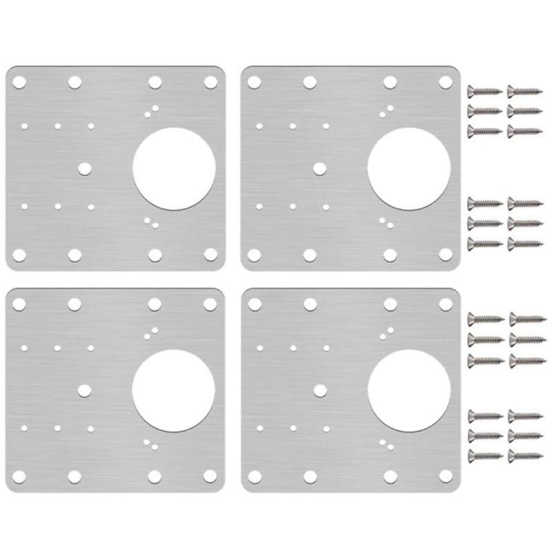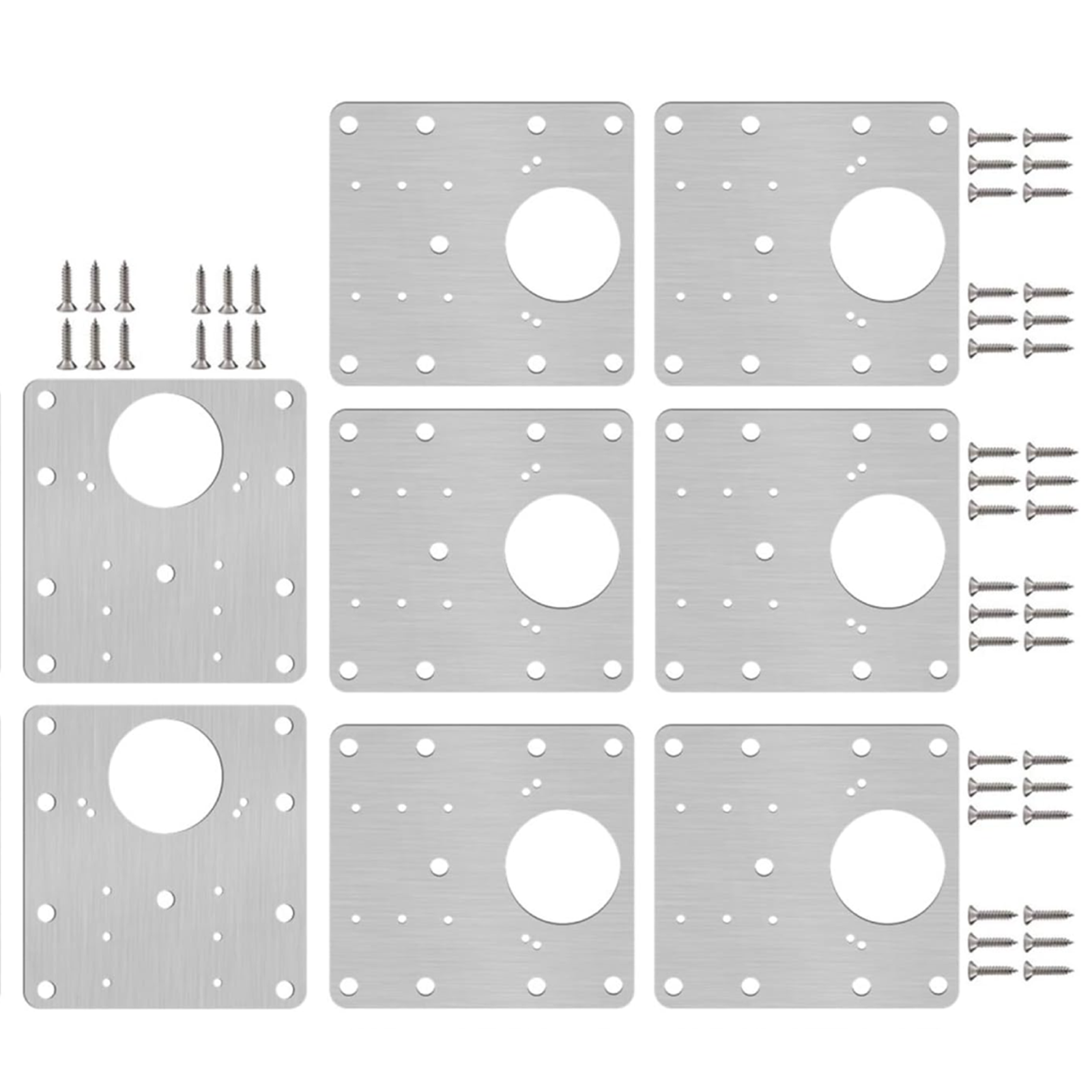 Setul contine 8 placi de fixare pentru balamale si 48 de suruburi compatibile. Fiecare placa are dimensiunea de 9 x 9 cm (3.54 x 3.54 inch).