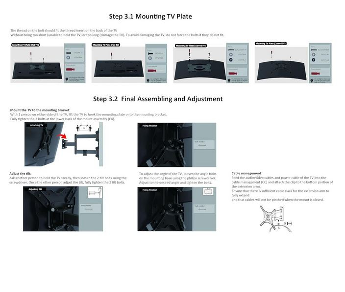 • Constructie solida: Suportul TV de perete este proiectat sa sustina televizoare de pana la 40 kg, garantand stabilitate si siguranta.