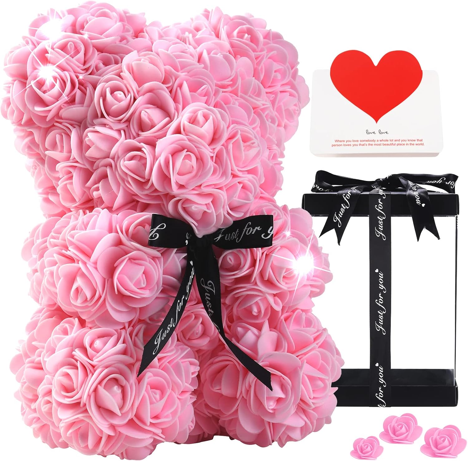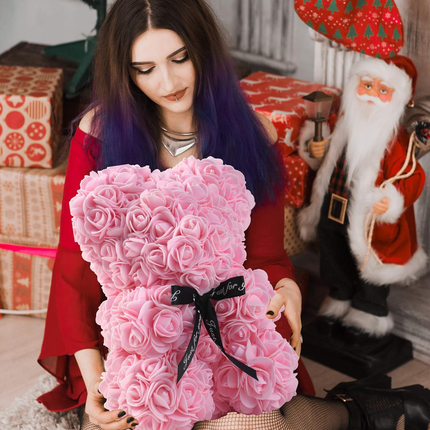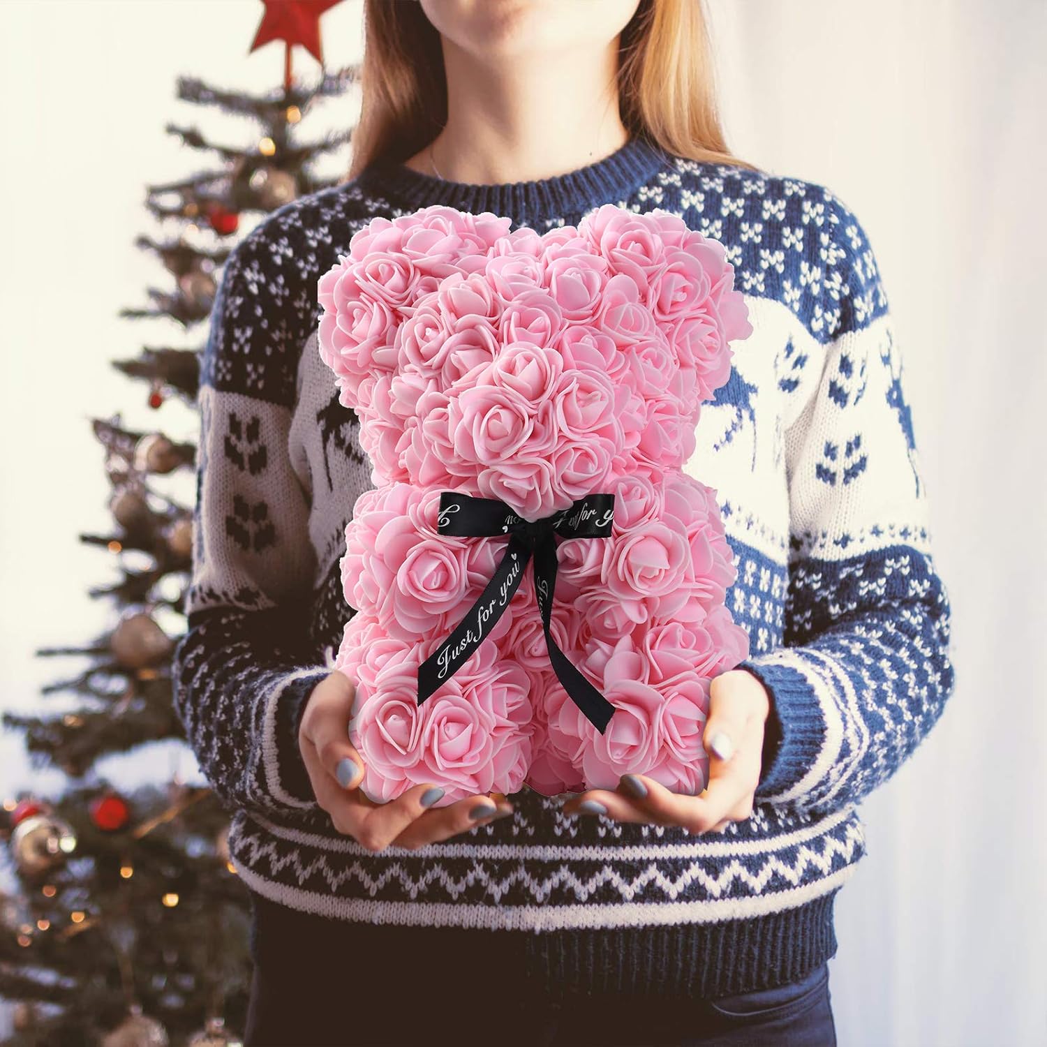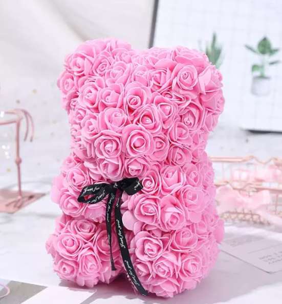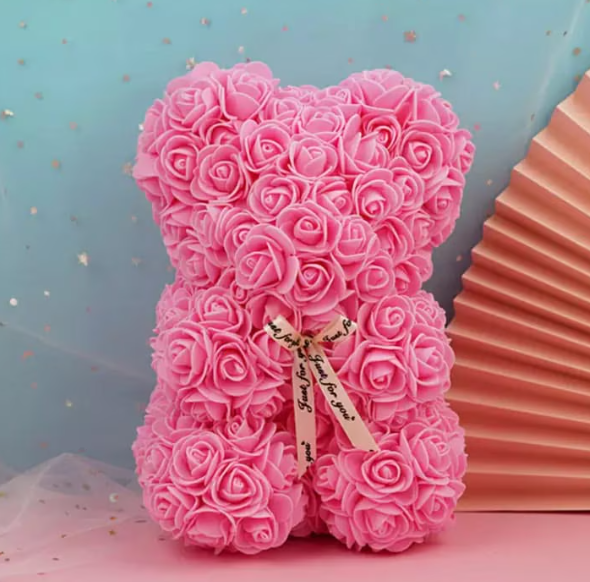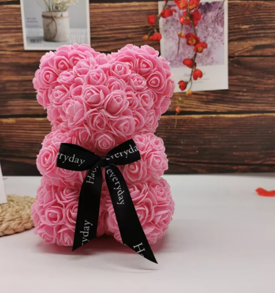 Material: Realizat din trandafiri artificiali din spuma, acest ursulet este placut la atingere si construit pentru a rezista in timp.