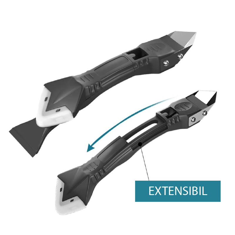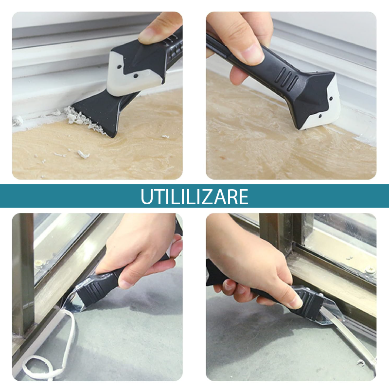 Set pentru chituit 3 in 1 Profesional SUPER TRENDS®, Spatula Pentru Chit, Cutter Pentru Indepartarea Chitului, Racleta Din Silicon cu 5 Capete de Schimb, Pentru Bucatarie, Baie, Geamuri, Chiuveta