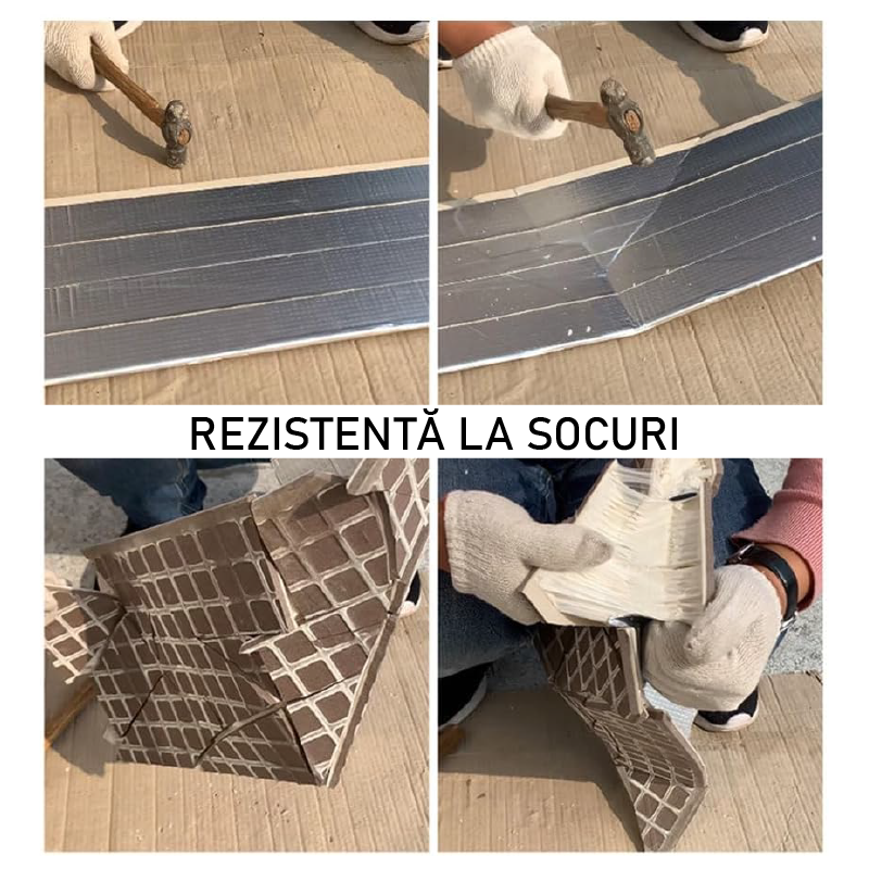 Banda de reparatie este realizata din cauciuc butilic ecologic de inalta calitate si folie de aluminiu, oferind impermeabilitate excelenta, aderenta, rezistenta la temperaturi ridicate si scazute, flexibilitate buna si capacitate de intindere pentru a se adapta la suprafete plane, denivelate si unghiulare.
