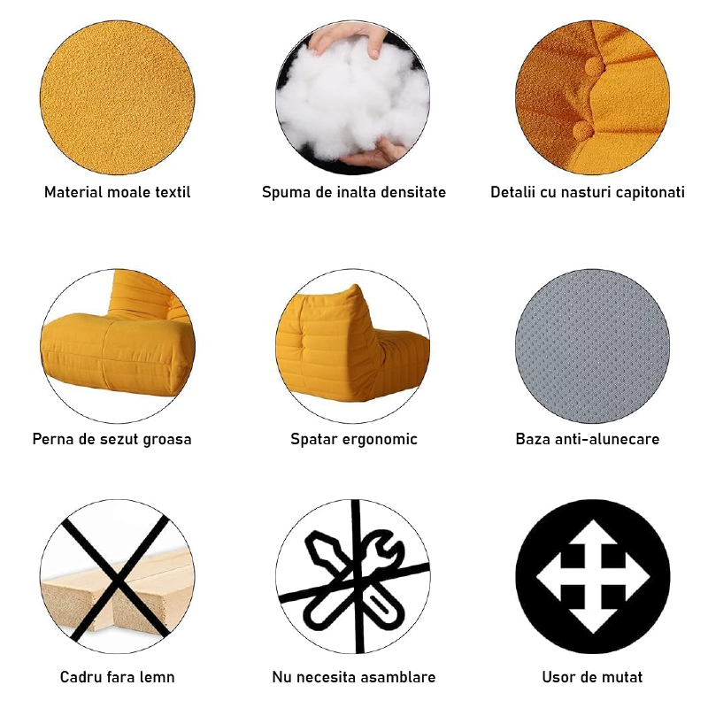 Potrivit pentru living, dormitor, camin, tatami, citit, jocuri, TV, meditatie, lucru langa pat. Usor de mutat. Baza anti-alunecare durabila.