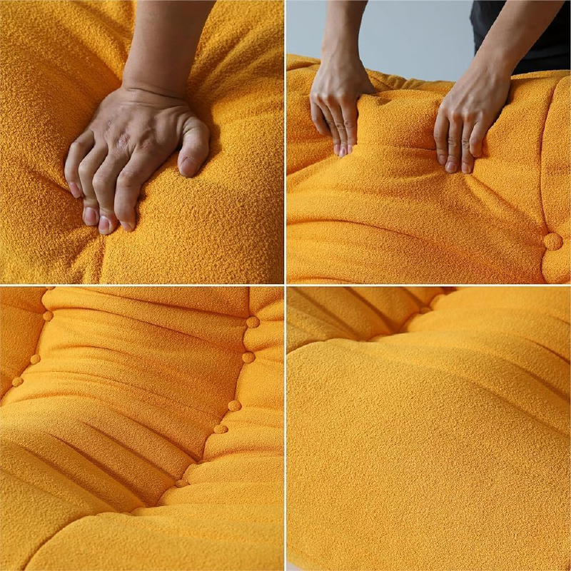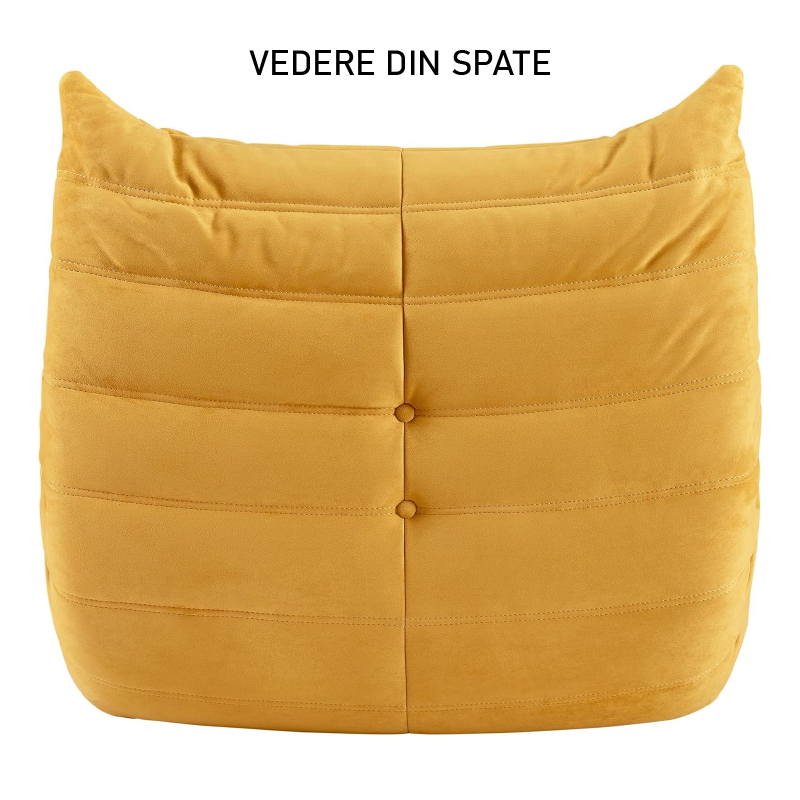 Material Teddy Velvet de inalta calitate, umplut cu spuma poliuretanica rezistenta, oferind un scaun confortabil si durabil în timp. Fara cadru de lemn sau metal, interiorul cu spuma ofera confort maxim de la stat la relaxare.