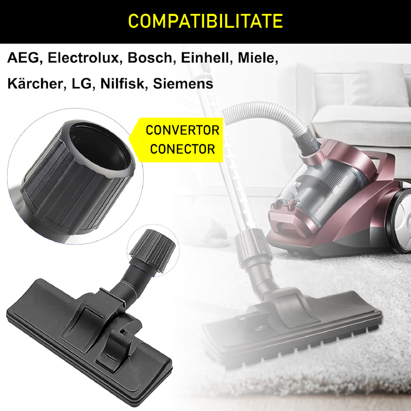 COMPATIBILITATE: Pachetul contine o perie cu duza de conectare Vario, diametru 38 mm. Compatibila cu aspiratoare Electrolux, Rowenta, Miele si Dirt Devil cu diametru de conectare de 38 mm.
